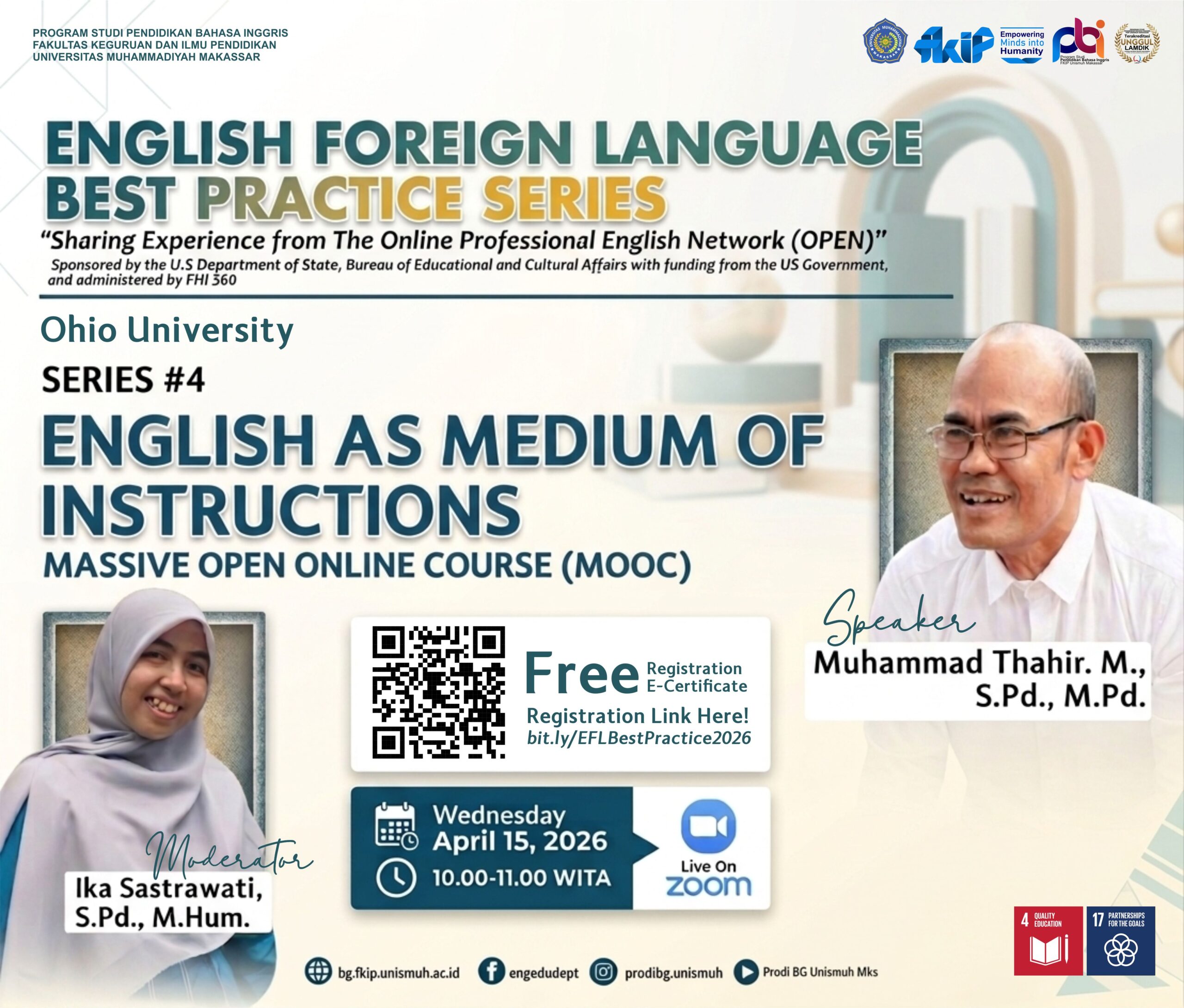 rodi Pendidikan Bahasa Inggris FKIP Unismuh Makassar Gelar EFL Best Practice Series Seri #4 Bahas English as Medium of Instructions April 11, 2026